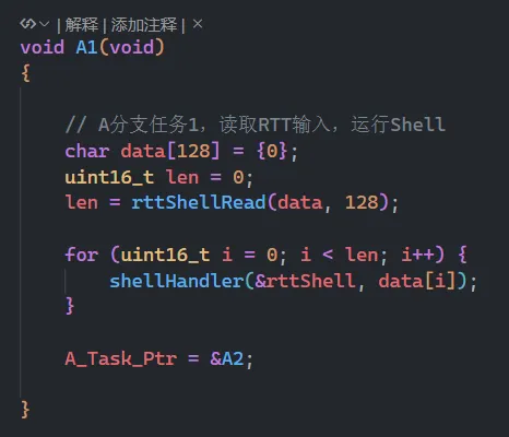 因为我这边是裸机开发,所以我选择了调用shellHandler的方式,然后在whlie(1)中简单实现一个定时调度的状态机,给shellHandler分配了一个任务: