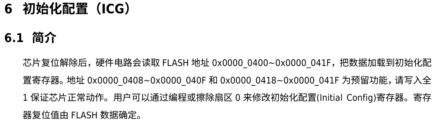 也就是说,在烧录代码之前,要先烧录ICG1.HRCFREQSEL位为1才能才能选择HRC为16M,否则HRC的值会一直是20M。但是你要是使用XHCode生成的keil工程,而且使用keil进行烧录,就会发现使用16M配置也是正常的。原因在于XHCode生成了.SFR文件,里面提前写入了ICG1.HRCFREQSEL的值,keil在烧录代码之前就会提前烧录这个寄存器的值。但是GCC这边就没法这样干了,所以使用GCC进行开发时,如果没有特殊需求,HRC最好还是配置成20M。