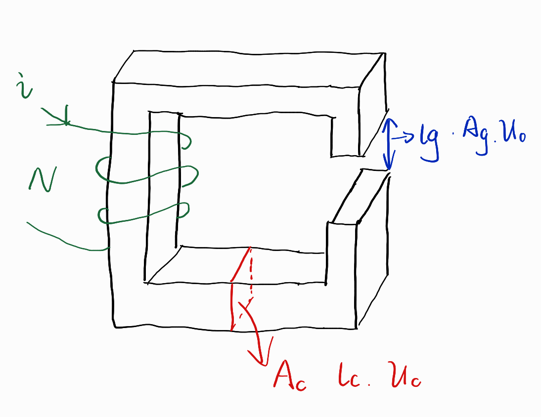 带气息的磁芯:ϕc=μcAclc+μ0AglgNi