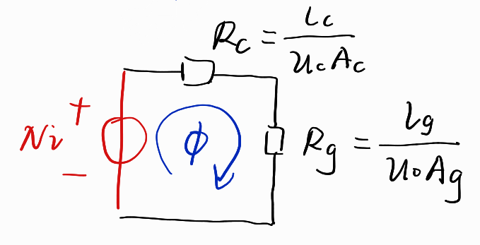 磁路和电路类似,在磁芯中也存在某种“流通量”——磁通ϕ,回顾一下上面两种磁芯中ϕ的表达式: